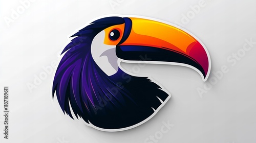 © Raul, Naklejka premium Vibrant toucan illustration, showcasing its colorful beak and dark plumage against a clean white background.