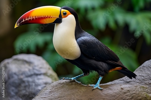 © chelmicky, Naklejka premium Vibrant Toucan Perched in Lush Tropical Jungle with Vast Copy Space for Design Composition
