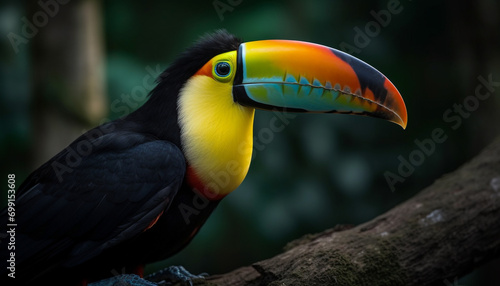 Fototapeta premium Vibrant toucan perched on branch, showcasing nature colorful beauty generated...