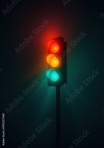 Fototapeta premium Vibrant traffic light in darkness.