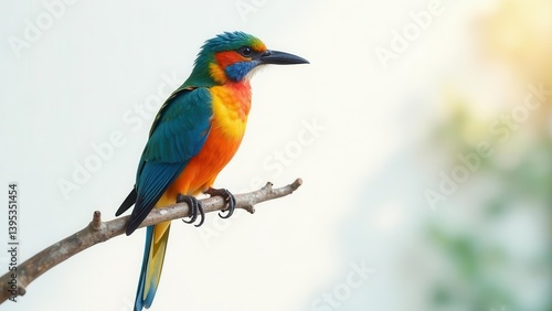 © Nova, Fototapeta premium Vibrant Tropical Bird Perched on a Branch, Displaying Exquisite Plumage in a Soft, Natural Light