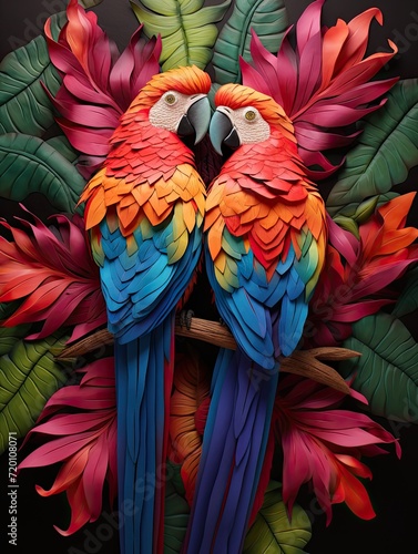 Fototapeta premium Vibrant Tropical Birds Wall Art and Colorful Feathers Display