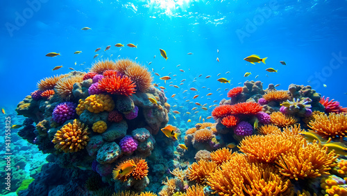 Naklejka premium Vibrant Tropical Coral Reef Underwater Paradise of Colorful Corals and Fish