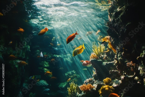 Naklejka premium Vibrant Tropical Fish Reef Aquarium Underwater Scene Colorful Ocean Life Sea...