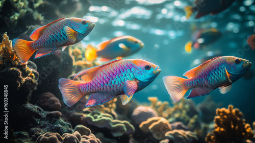 Naklejka premium Vibrant Tropical Fish Swimming in a Coral Reef