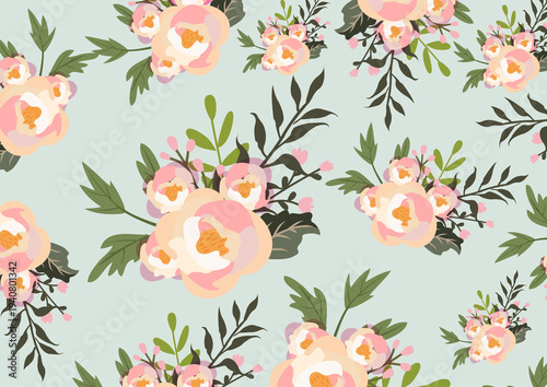 © tokyo jawa, Obraz premium Vibrant tropical flower pattern with exotic hibiscus and palm leaves in a seamless repeat layout