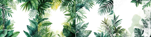 © R Studio, Naklejka premium Vibrant Tropical Foliage Background with Lush Green Leaves and Exotic Plants Scenic nature image showcasing a dense flourishing jungle or rainforest setting with a variety of tropical plants