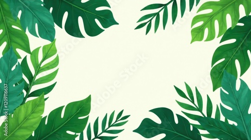 Naklejka premium Vibrant Tropical Foliage Frame An Elegant Border of Lush Green Leaves for...