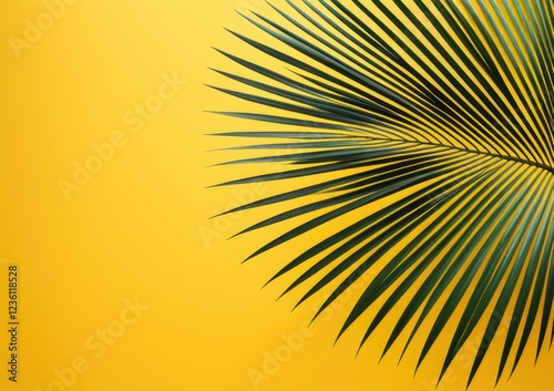 Fototapeta premium Vibrant tropical palm leaf against a bold yellow background