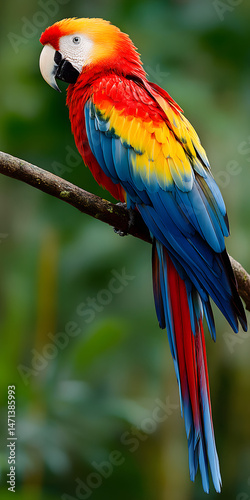© Awildbulbasaur, Fototapeta premium Vibrant Tropical Parrot in Lush Greenery