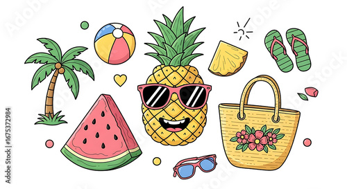 Fototapeta premium Vibrant tropical summer elements forming a dynamic and playful arrangement