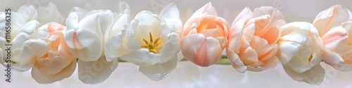 © Popelniushka, Obraz premium Vibrant Tulip Blossoms in a Row: A Colorful Spring Bouquet Display