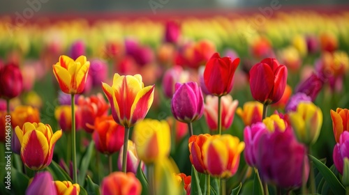 © Gajah, Fototapeta premium Vibrant tulips in a colorful field.