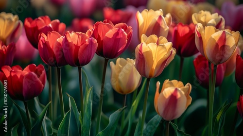 © Plaifah, Obraz premium Vibrant Tulips in Bloom at a Colorful Garden