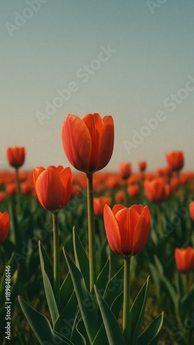 © Rawpixel.com, Naklejka premium Vibrant tulips under clear sky mobile wallpaper