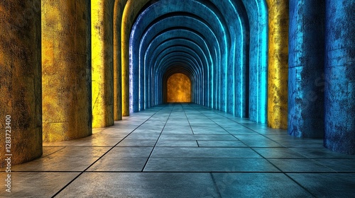 Fototapeta premium Vibrant Tunnel with Colorful Arches and Illuminated Pathway