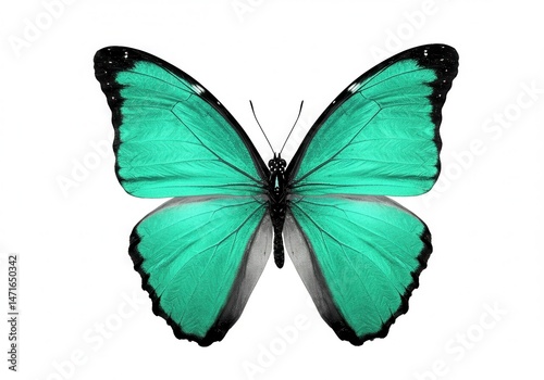 Fototapeta premium Vibrant turquoise butterfly with black markings isolated against a clean...