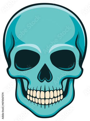 © Alex, Fototapeta premium Vibrant Turquoise Cartoon Human Skull Illustration for Halloween or Graphic Design