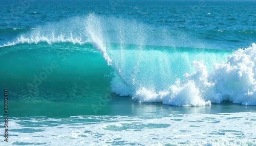 Fototapeta premium Vibrant turquoise ocean waves crash, white foam crests , wave texture, foam