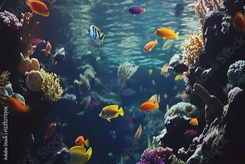 Naklejka premium Vibrant Underwater Aquarium Scene