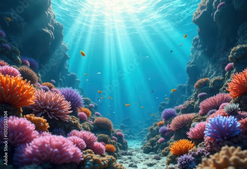 Naklejka premium vibrant underwater community showcasing rich diversity tropical corals...