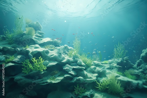 Fototapeta premium Vibrant underwater coral landscape with fish.