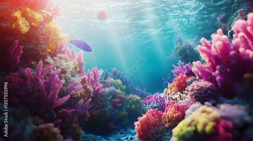 © AI Journeys , Naklejka premium Vibrant underwater coral reef action ocean background colorful nature wallpaper tranquil environment underwater viewpoint