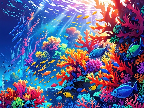 © Illustrations, Naklejka premium "Vibrant Underwater Coral Reef Ecosystem"