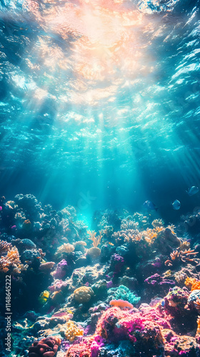 Obraz premium Vibrant Underwater Coral Reef Illustration