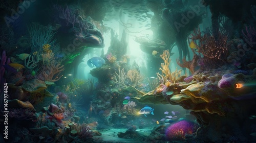© Eka, Fototapeta premium Vibrant underwater coral reef scene