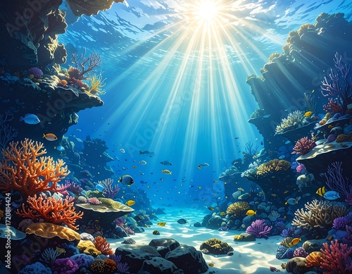 © agawe, Fototapeta premium Vibrant underwater coral reef scene