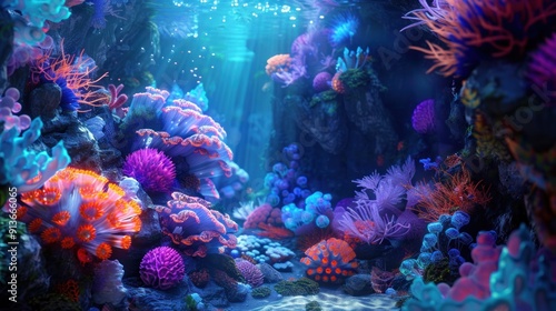 Naklejka premium Vibrant Underwater Coral Reef Scene