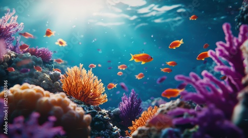 Naklejka premium Vibrant Underwater Coral Reef Scene With Colorful Fish