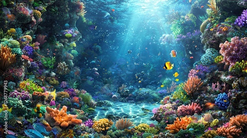 Fototapeta premium Vibrant Underwater Coral Reef Scene with Colorful Fish