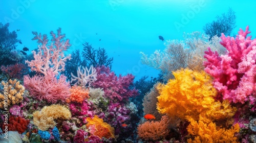 Obraz premium Vibrant Underwater Coral Reef Scene with Diverse Marine Life