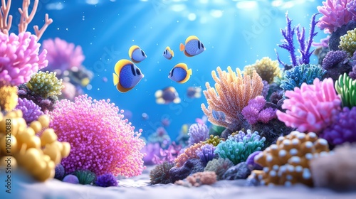 Obraz premium Vibrant Underwater Coral Reef Scene with Fish