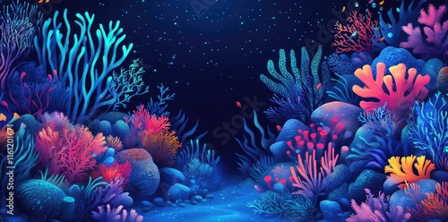 Obraz premium Vibrant Underwater Coral Reef Scene With Glowing Colors