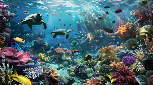 Fototapeta premium Vibrant Underwater Coral Reef Teeming with Diverse Marine Life