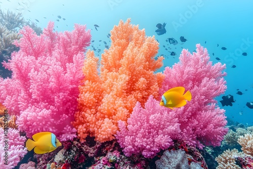 Naklejka premium Vibrant Underwater Coral Reef with Exotic Fish - Marine Life Scene