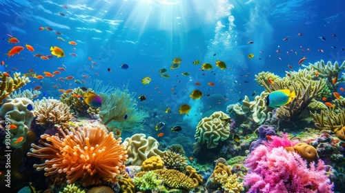 Naklejka premium Vibrant Underwater Coral Reef with Fish
