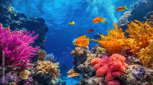 Naklejka premium Vibrant Underwater Coral Reef with Fish and Sea Life
