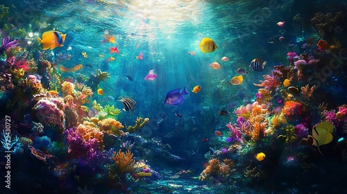 Naklejka premium Vibrant underwater coral reef with tropical fish
