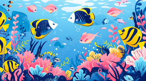 Naklejka premium Vibrant Underwater Fish Ecosystem with Colorful Coral Reef Background A...
