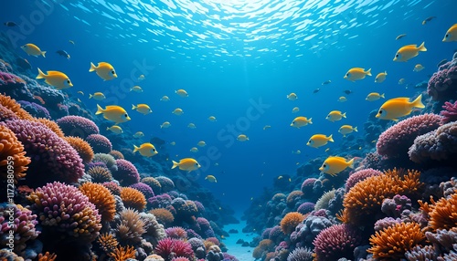 © Aldiwftr, Fototapeta premium Vibrant Underwater Paradise: A Colorful Coral Reef teeming with life