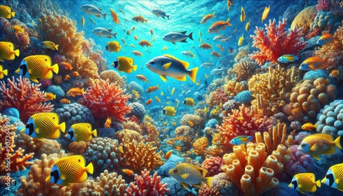 © SuperStockGallery, Fototapeta premium Vibrant Underwater Paradise Colorful Coral Reef with Fish and Marine Life.