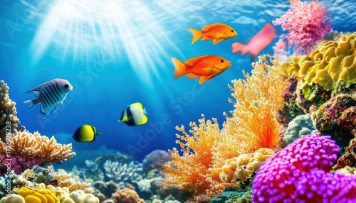 Obraz premium Vibrant Underwater Paradise: Colorful Coral Reef with Tropical Fish