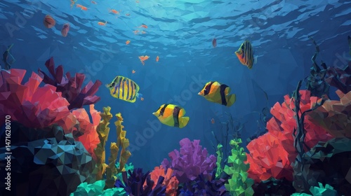 Fototapeta premium Vibrant Underwater Polygonal Scene: A Low-Poly Digital Art of Tropical Reef
