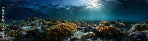 Obraz premium Vibrant underwater scene coral reef hdr panoramic view ocean depths aesthetic...
