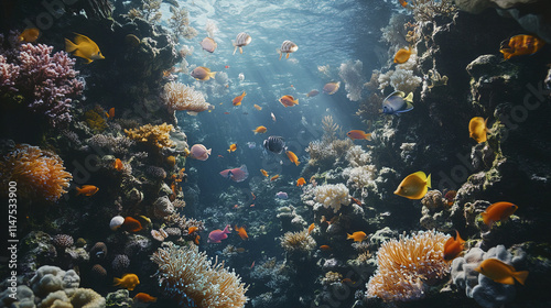 Naklejka premium vibrant underwater scene showcasing bustling coral reef filled with colorful...