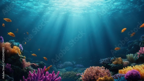 Fototapeta premium Vibrant Underwater Scene with Colorful Coral and Fish Swimming